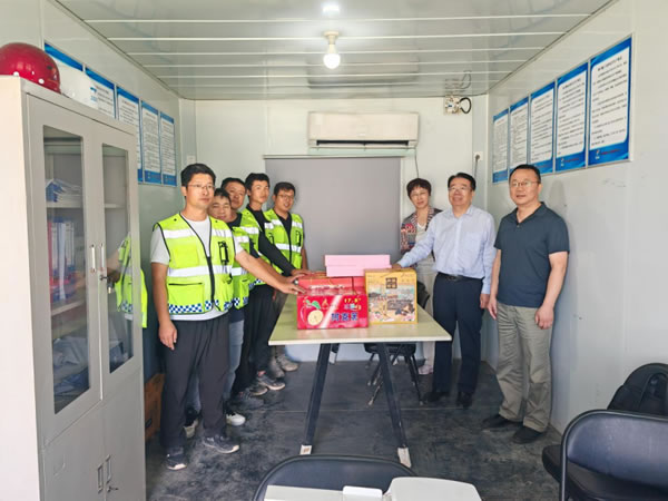 在项目现场,孙斌堂向坚守一线的干部职工及家属表示亲切关怀和诚挚感谢,并送上节日慰问品和中秋祝福。他认真听取了项目进展工作情况汇报,详细检查了项目安全生产、值班值守等工作,深入了解信息报送、应急处置等工作情况。